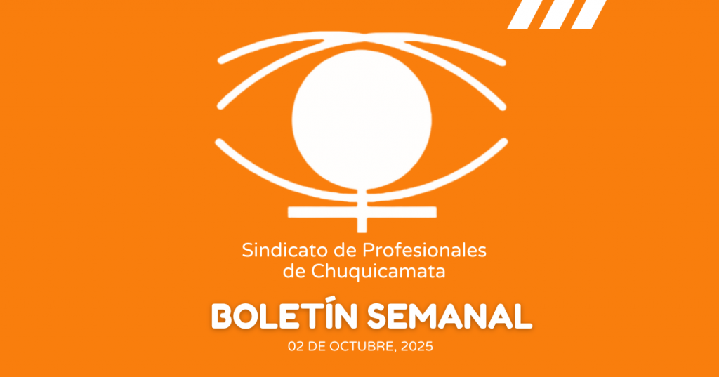 Te invitamos a revisar nuestro nuevo boletín semanal del Sindicato de Profesionales Codelco Chuquicamata, donde encontrarás las principales noticias, avances y temas de interés que nos afectan como colectivo. Este espacio informativo ha sido creado para mantenernos conectados, informados y fortalecidos como organización. ¡No te lo pierdas!