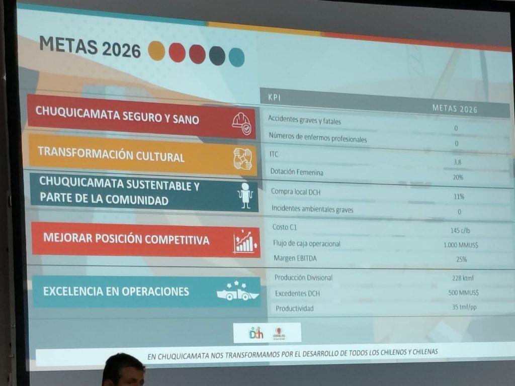 Finalmente, René Galleguillos relevó la importancia de los cinco ejes estratégicos con que la División Chuquicamata debe desplegar sus mejores esfuerzos para asegurar una exitosa gestión 2026.
