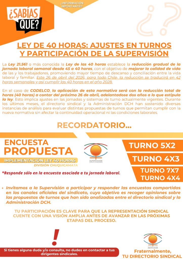SABÍAS QUE?? – LEY DE 40 HORAS: AJUSTES EN TURNOS Y PARTICIPACIÓN DE LA SUPERVISIÓN